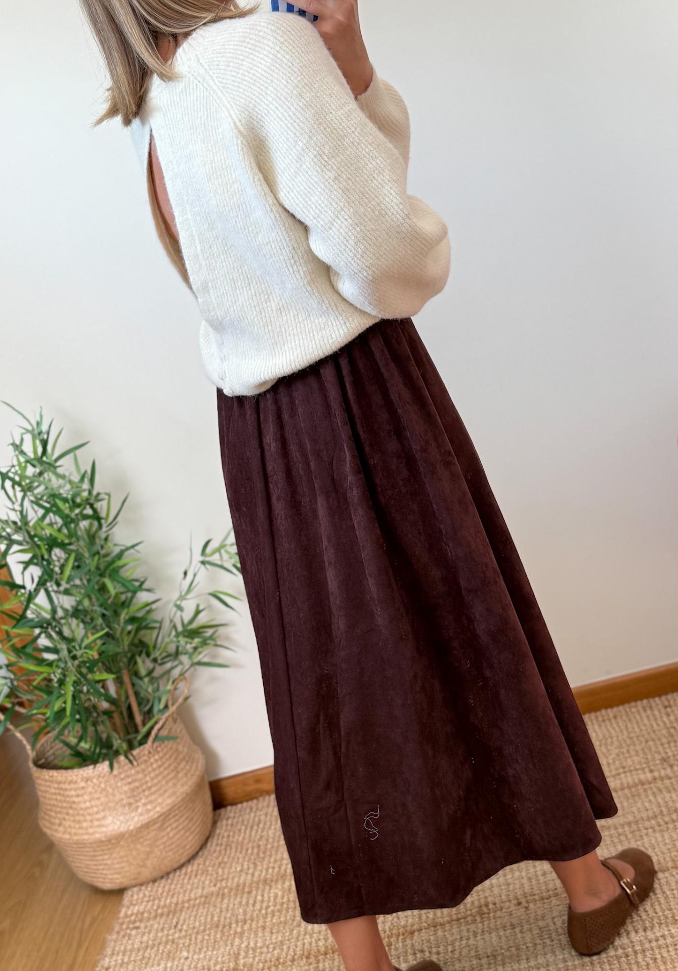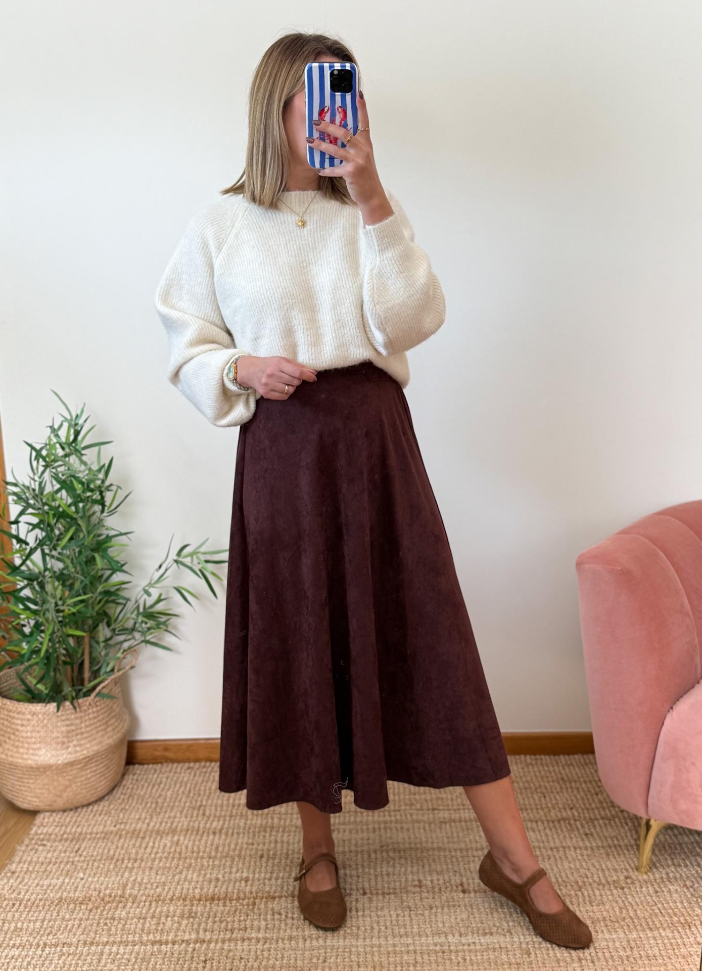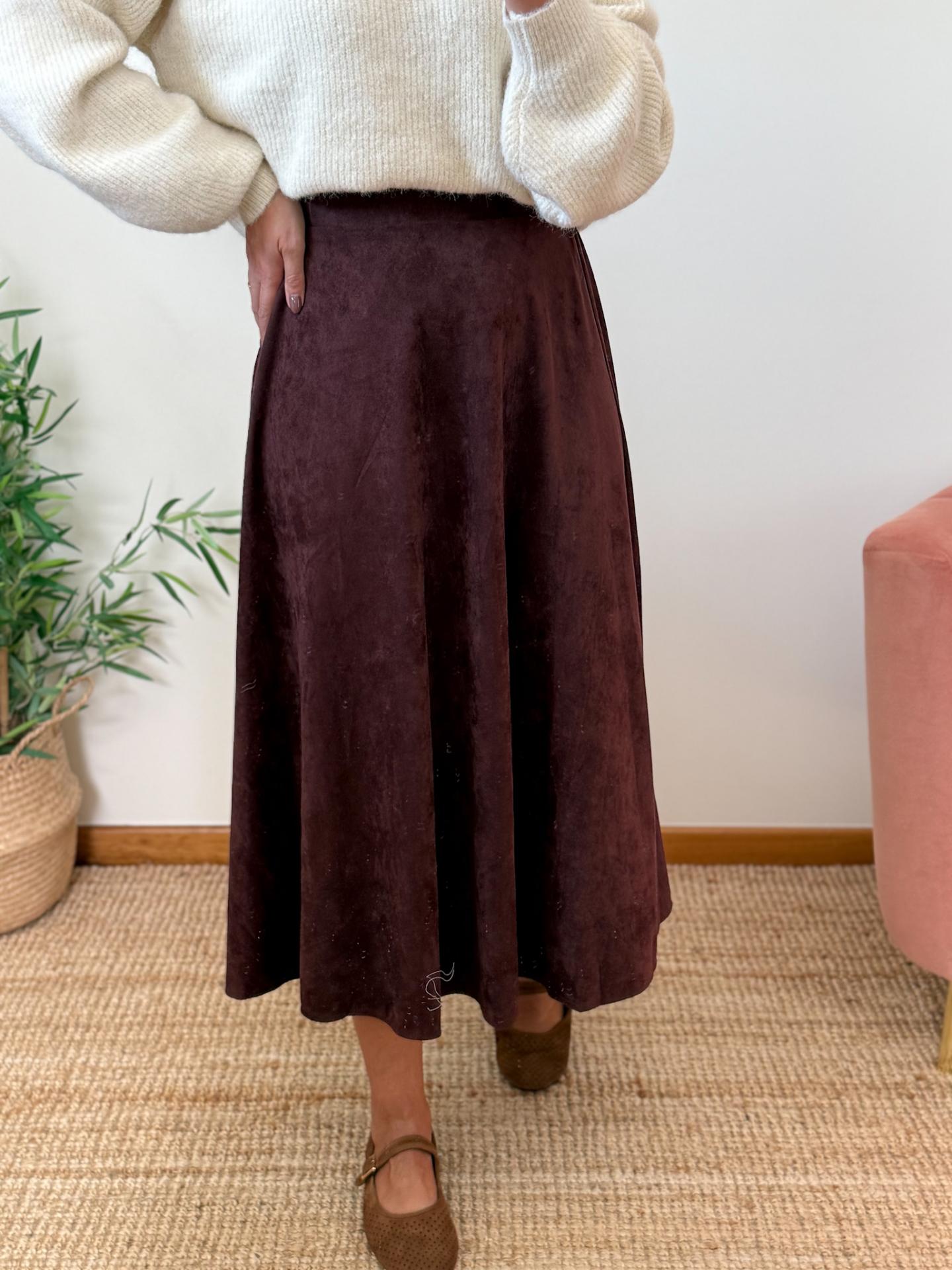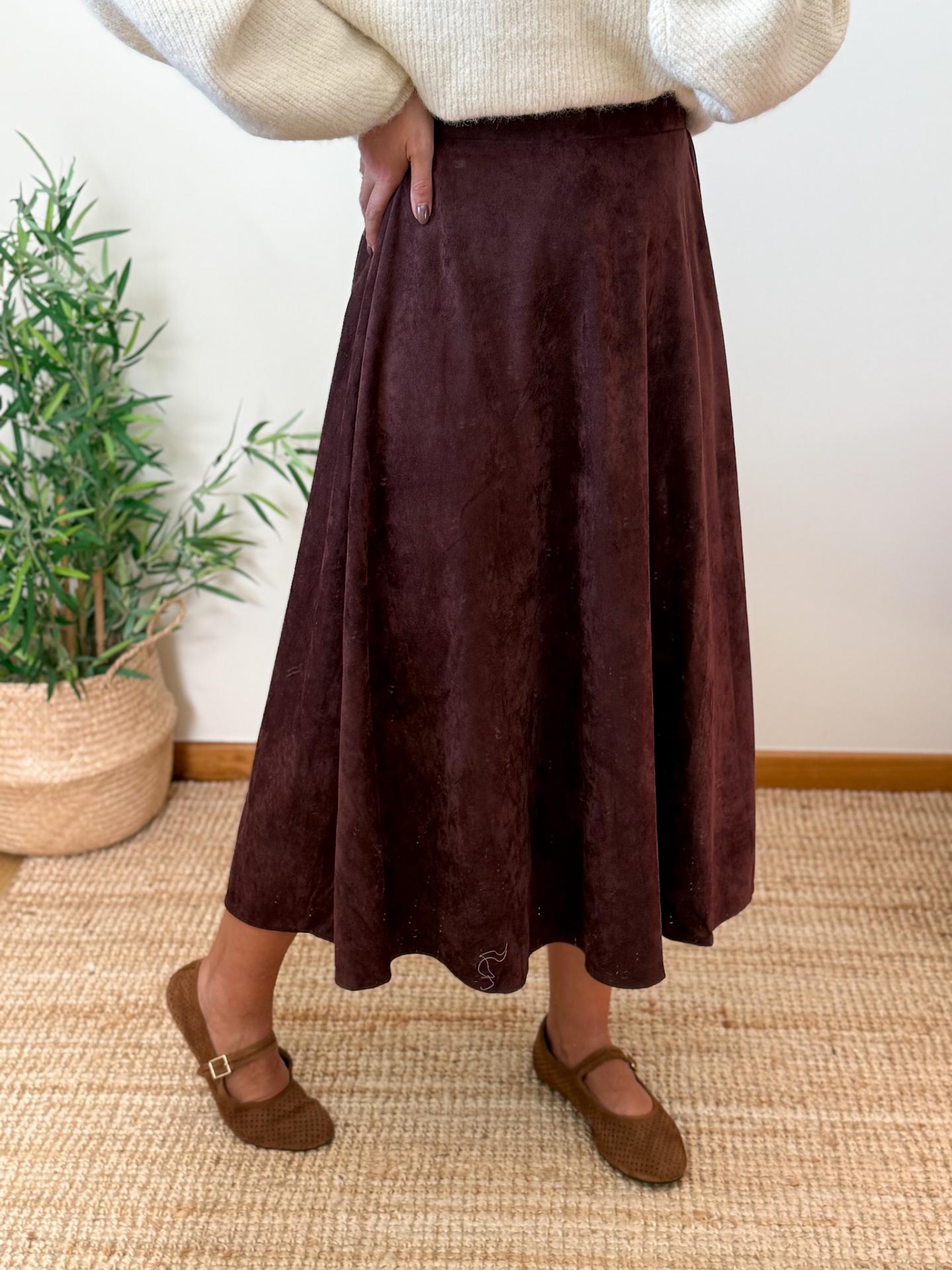 Saia em camurça sintética com um toque super suave, com cintura elástica. SUPER TENDÊNCIA!